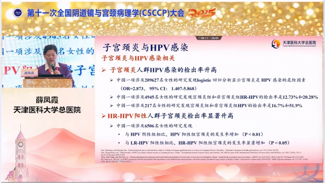 1. 子宮頸炎人群HPV感染的檢出率升高、HR-HPV陽性人群子宮頸炎檢出率顯著升高;
