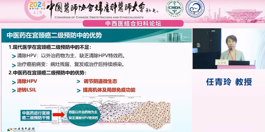 江蘇省中醫(yī)院任青玲教授就《中西醫(yī)結(jié)合宮頸癌防治一體化平臺建設(shè)》為題進(jìn)行報告: